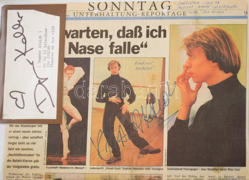 Dagmar Koller és Vladimir Malakhov aláírása papírlapon és újságkivágás... https://www.darabanth.com/de/481-Fernauktion/481.0/Kunst-Dokumente-andere-Sammelgebiete/Signatur~1500024/Dagmar-Koller-es-Vladimir-Malakhov-alairasa-papirlapon-es-ujsagkivagason~II3290948
