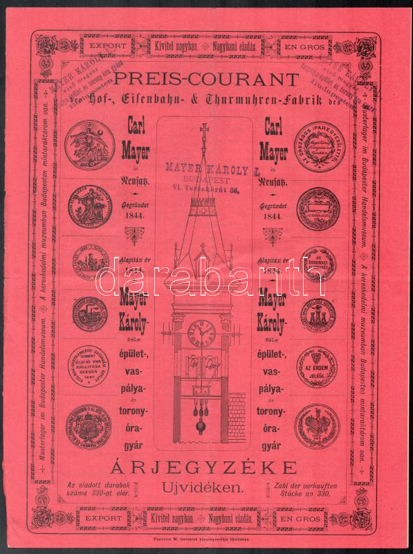 1890 Vaspálya-, épület- és toronyóragyár óra reklám nyomtatványok össz... https://www.darabanth.com/de/481-Fernauktion/481.0/Kunst-Dokumente-andere-Sammelgebiete/Werbungen~2000002/1890-Vaspalya-epulet-es-toronyoragyar-ora-reklam-nyomtatvanyok-ossz-8p~II3285950
