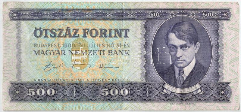 Adamo F43 https://www.darabanth.com/de/481-Fernauktion/481.0/Numismatik/Ungarische-Banknoten~500008/1990-500Ft-E-633-081187-T-FAdamo-F43~II3289894