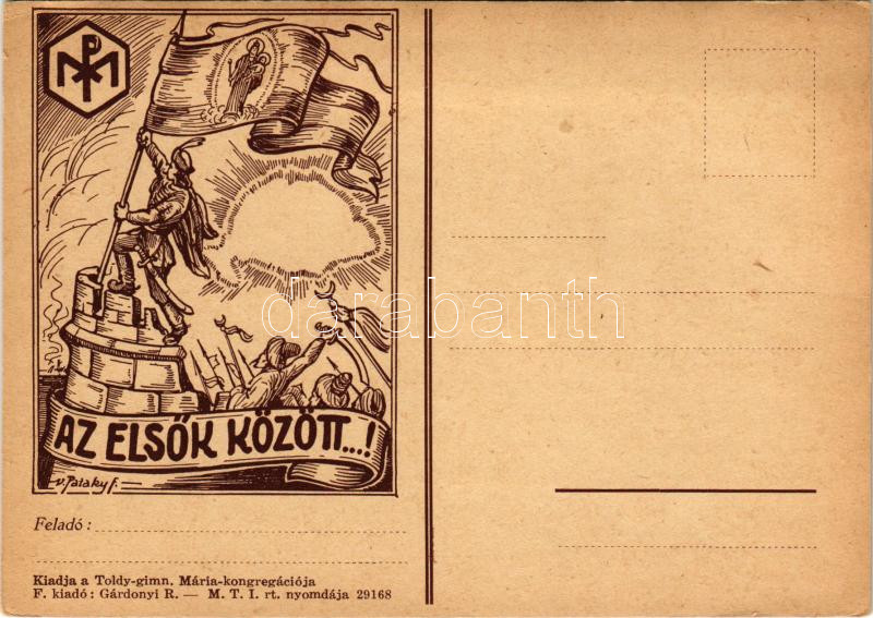 Beschreibung: Az elsők között...! Gárdonyi R. kiadása / Hungarian national propaganda, Among the first ones s: Pataky F.