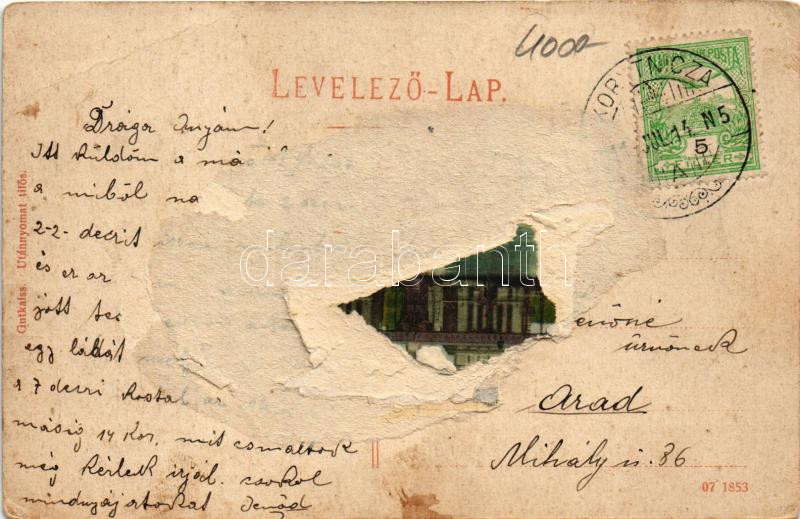 Beschreibung: Koritnyica, Korytnica; Zsófia forrás. Gutkaiss kiadása / mineral water spring (ragasztónyom / gluemark)