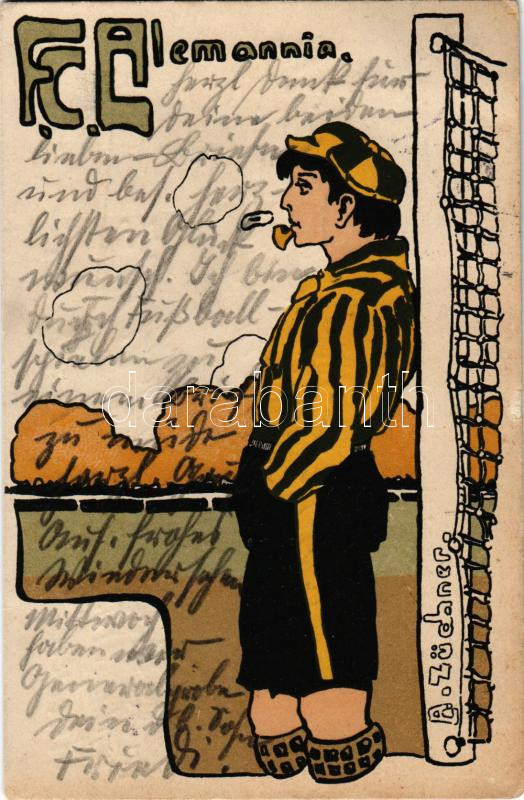 Beschreibung: 1905 FC Alemannia Aachen / Német foci klub művészlapja, labdarúgó / German football club's player. Art Nouveau s: Züchner (EK)