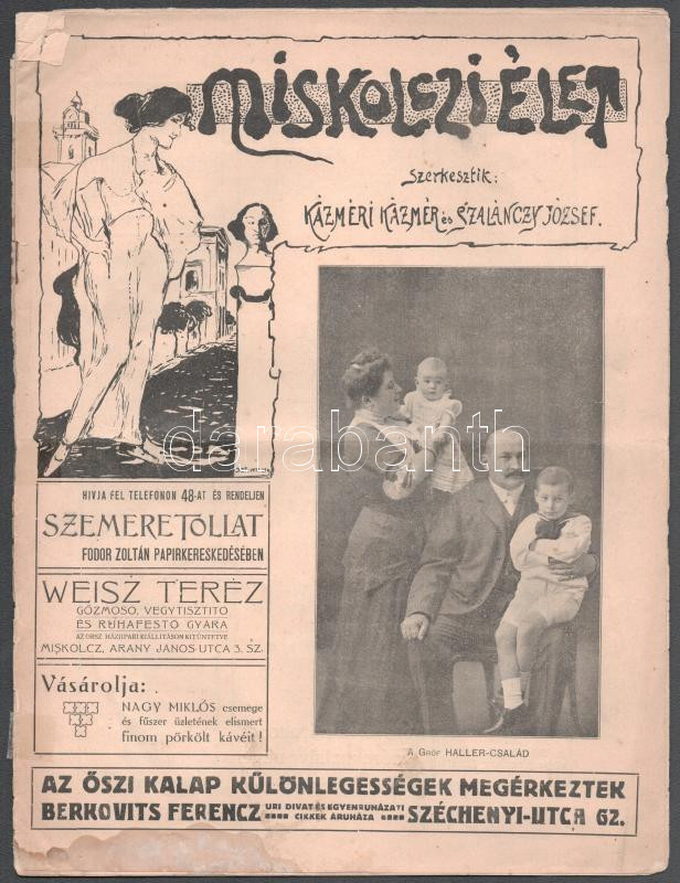 1913 Miskolczi Élet hetilap I. évf. 2. száma, szerk.: Kázméri Kázmér és Szalánczy József. Miskolc, Klein és Ludvig-ny., 12 p. Tűzött papírkötés, sérült, foltos, a tűzéstől különvált borítóval.