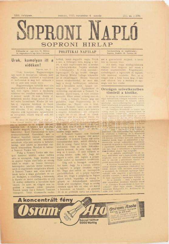 1913 Soproni Napló, XXII. évf. 255. sz., 1913. nov. 6. Röttig-Romwalte... https://www.darabanth.com/de/482-Fernauktion/482.0/Kunst-Dokumente-andere-Sammelgebiete/Drucksachen~500013/1913-Soproni-Naplo-XXII-evf-255-sz-1913-nov-6-Rottig-Romwalter-ny-4-p~II3297528