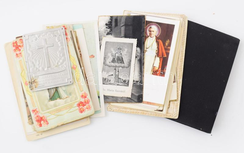 Beschreibung: 57 db szentkép + régi imakönyv