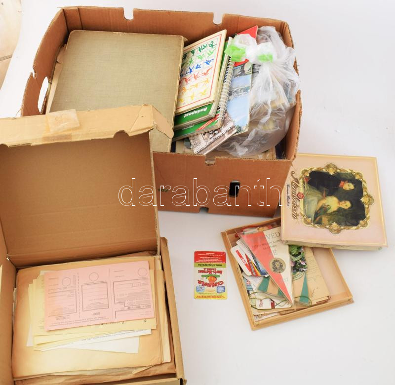 Beschreibung: Banános doboznyi vegyes papírrégiség tétel.