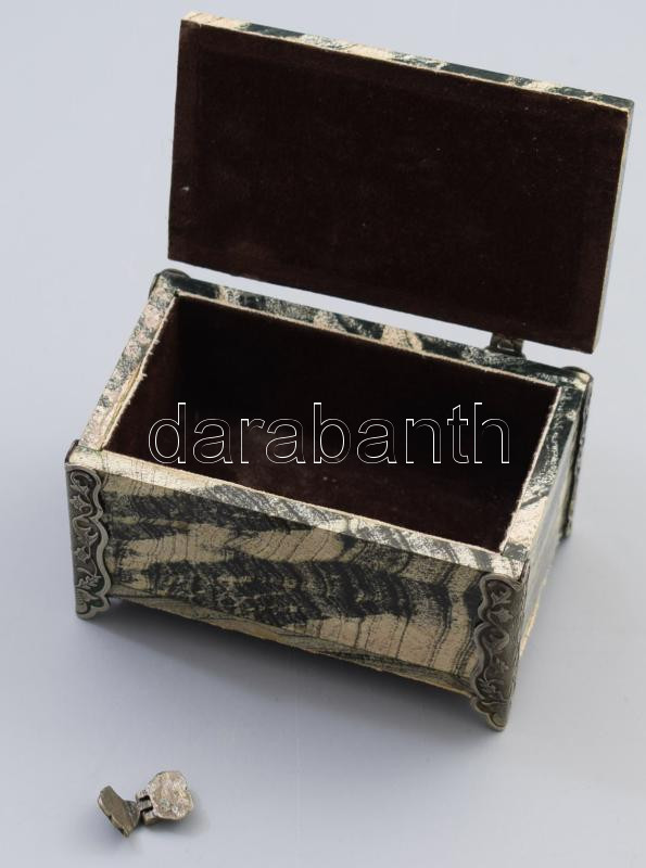 Beschreibung: Márvány ékszeres dobozka, egyik levált darabja benne van, 10x6 cm