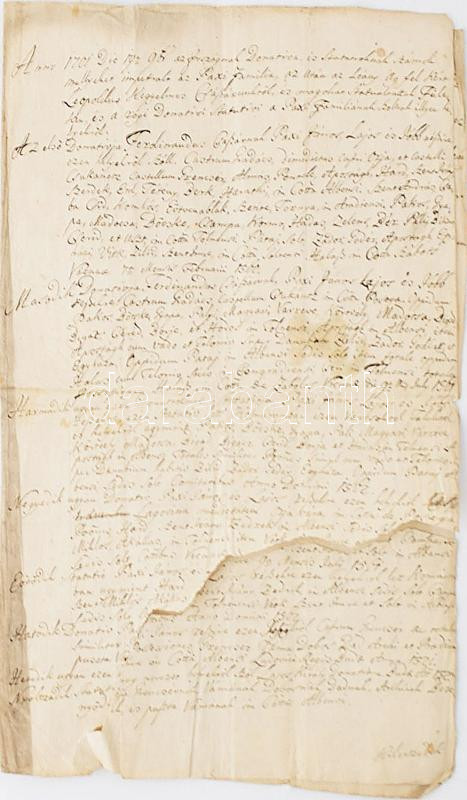 1707. nov. 19., A pákosi Paksy család azon birtokadományairól szóló okleveleinek magyar nyelvű kivonata, amelyeket később a család leányága felkért I. Lipóttól. 36 darab irat regesztája 1521 és 1662 között, köztük II. Lajos és I. Ferdinánd adományleveleivel.