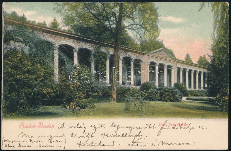 Beschreibung: 1903 Kézdi-Kovács László (1864-1942) festőművész, műkritikus személyes hangvételű autográf sorai Baden-Baden-i képeslapon