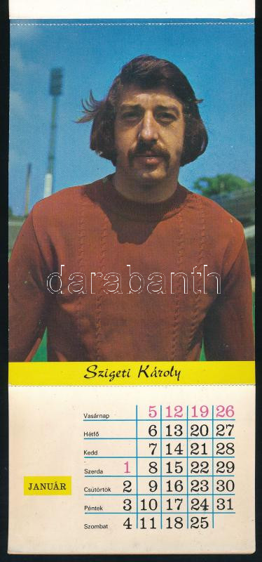 1975 Újpesti Dózsa (UTE) labdarúgó csapata, 1975 naptár: Szigeti Károly, Kolár Endre, Harsányi László, Juhász Péter, Dunai Ede, Horváth József, Fekete László, Tóth András, Bene Ferenc, Fazekas László, Zámbó Sándor, Nagy László, Dunai Antal fotóival.