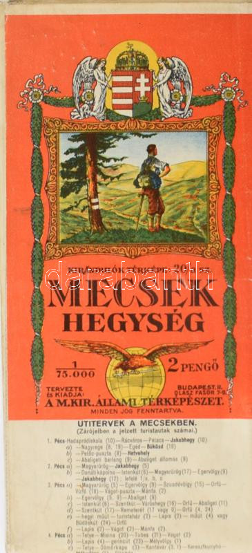 1929 A Mecsek-hegység, Kirándulók Térképe 20/a, 1 : 75.000, kiadja: Magyar Királyi Állami Térképészet, hátoldalt a hajtások mentén megerősítve, 48x65 cm