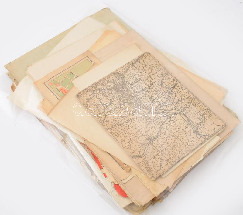 Beschreibung: Vegyes térkép tétel: nagyrészt magyar vonatkozású térképek vegyes állapotban, nagyrészt a háború előttről, tőbb javítani érdemes tétel