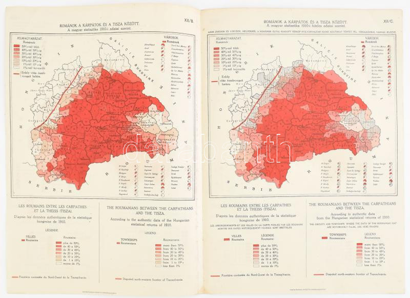 cca 1920 Romanians in Transylvania and along the Tisza 6 ethnographic maps from the material of the argument against the Trianon Peace Treaty 22x32 cm
