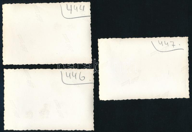 Beschreibung: cca 1940 Sérült katona kimentése magyar Toldi harckocsiból tankból. Egészségügyi gyakorlat 3 db fotó 6x9 cm