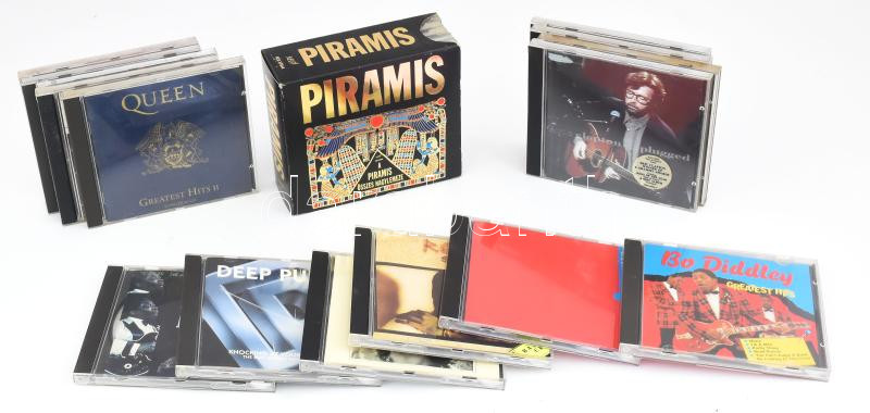 20 darab zenei CD, jó darabokkal, közte Omega, Queen, Moody Blues, Eric Clapton, Piramis, Demjén Ferenc, BB King, Deep Purple, The Doors, Révész Sándor, Dire Straits, Bo Diddley, stb.