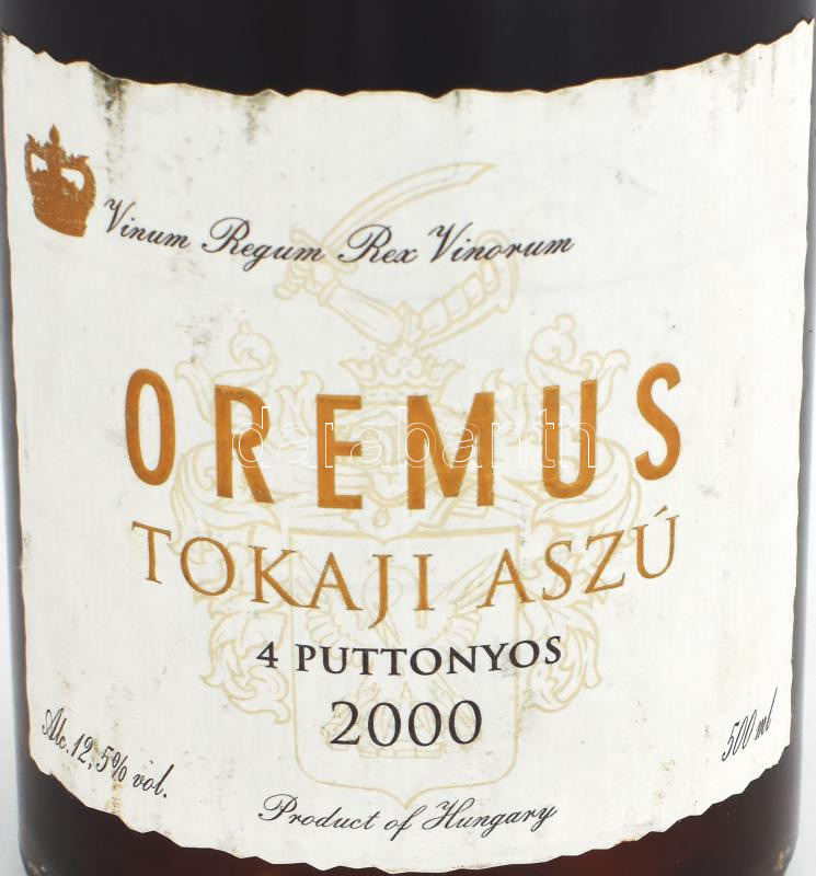 2000 Oremus 4 puttonyos Tokaji Aszú, bontatlan palack, szakszerűen tár... https://www.darabanth.com/de/482-Fernauktion/482.0/Kunst-Dokumente-andere-Sammelgebiete/Vintage-Weine-Getranke~1500017/2000-Oremus-4-puttonyos-Tokaji-Aszu-bontatlan-palack-szakszeruen-tarolva-0-5l-12-5~II3291657