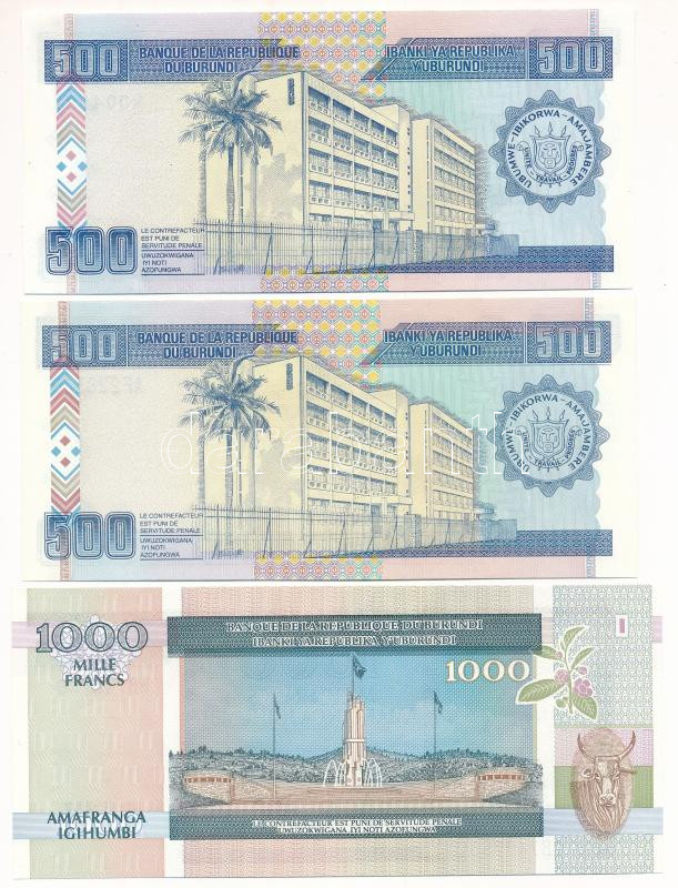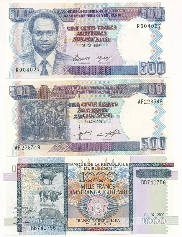 Beschreibung: Burundi 1995. 500Fr + 1999. 500Fr + 2000. 1000Fr T:AU az egyiken törés nélküli hajlás az egyik szélén
