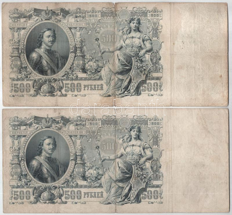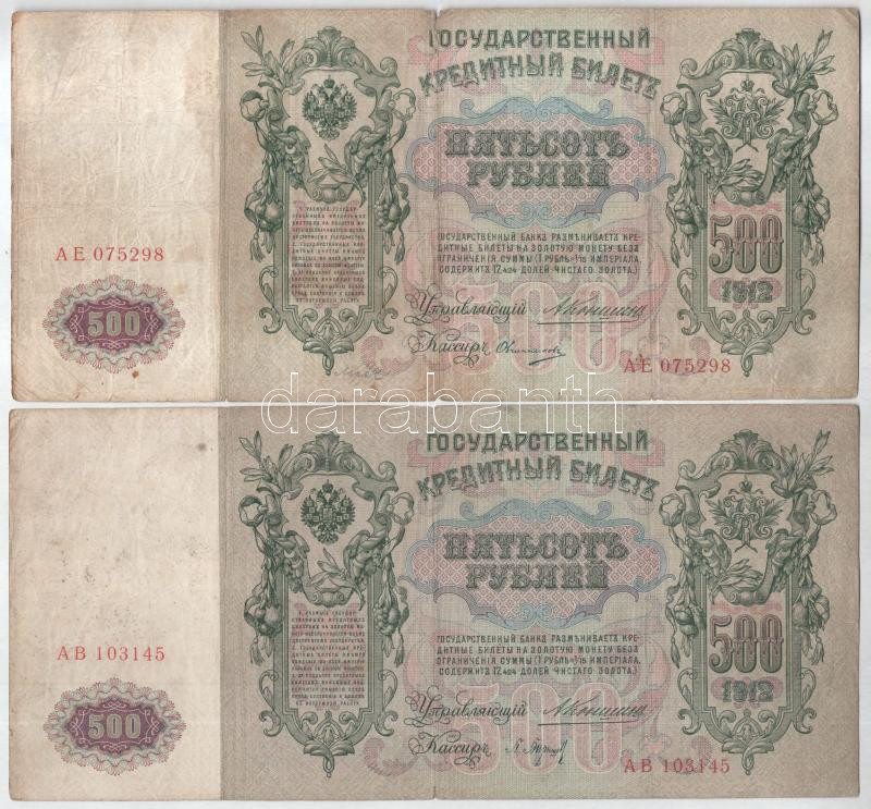 Orosz Birodalom 1913-1914. (1912) 500R (2xklf) mindegyik különböző pénztáros aláírással. Szign.: Konshin (Az állami bank igazgatója) T:F-VG