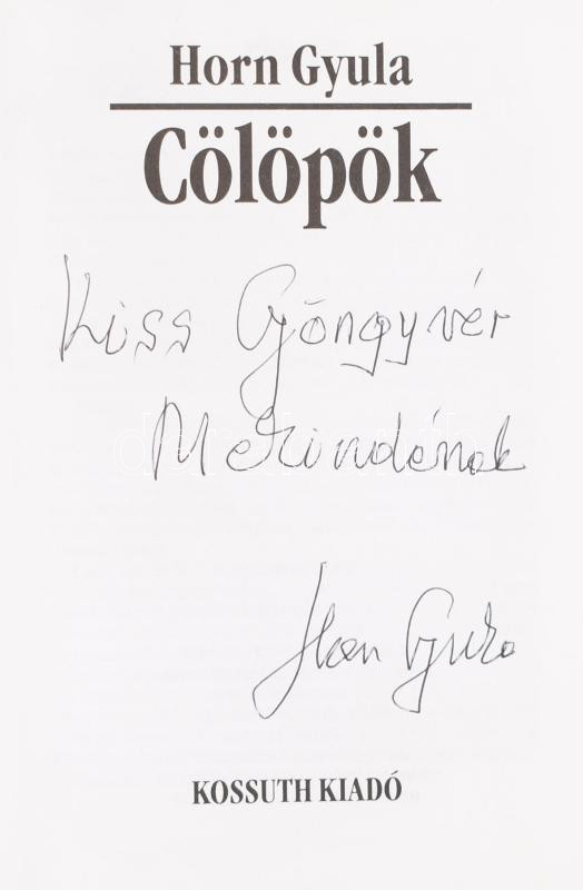 Horn Gyula: Cölöpök. A szerző, Horn Gyula (1932-2013) egykori miniszte... https://www.darabanth.com/de/483-Fernauktion/483.0/Bucher/Bucher-Geschichte~2000132/Horn-Gyula-Colopok-A-szerzo-Horn-Gyula-1932-2013-egykori-miniszterelnok-politikus-altal~II3304488