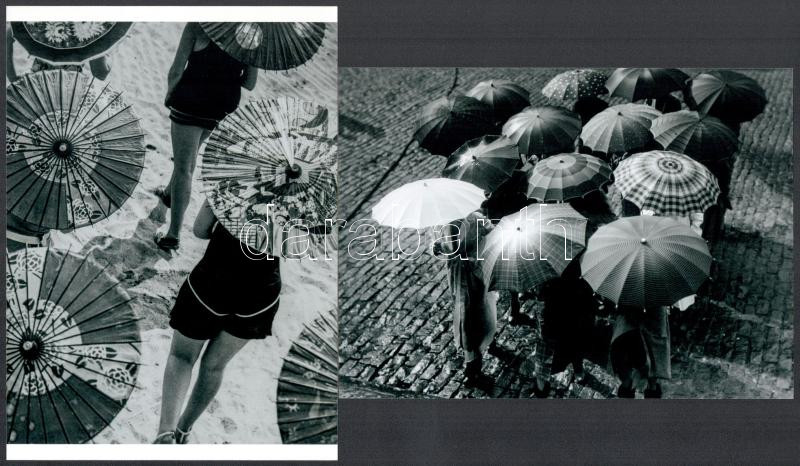 cca 1932 Munkácsi Márton (1896-1963) magyar - amerikai fotóriporter és fotóművész felvételei (Napernyők és esernyők takarásában), a néhai Lapkiadó Vállalat központi fotólaborjának archívumából 2 db modern nagyítás, jelzés nélkül, 21x15 cm és 15x21 cm