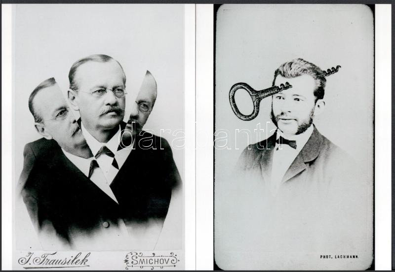 cca 1933 Stepan Bohumil (1913-1985) cseh illusztrátor művész fotókollázsai (Agyafúrt; Skizofrénia) nyomán készült 2 db modern nagyítás, jelzés nélkül, 21x15 cm