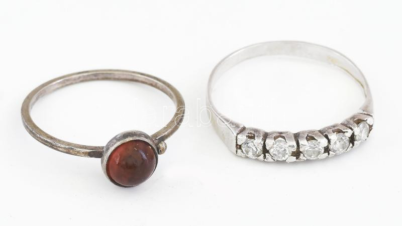 Beschreibung: 2 darab ezüst (Ag) gyűrű, egyik borostyán kővel, jelzett, m: 52 és 54, bruttó: 2,3g