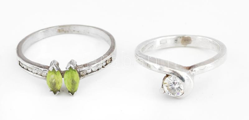 Beschreibung: 2 darab ezüst (Ag) gyűrű, fehér és zöld kövekkel, jelzett, m: 49 és 56, bruttó: 4,3g