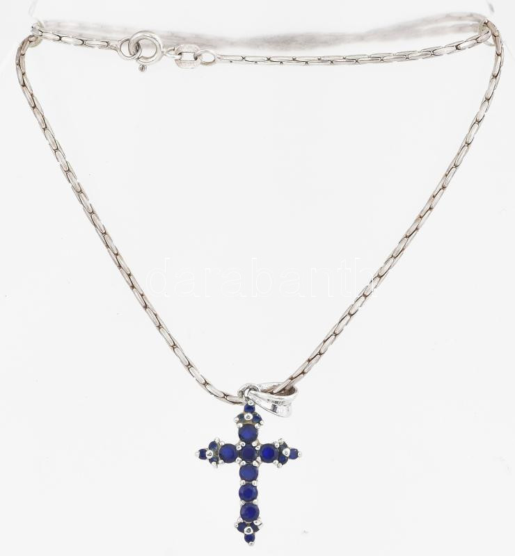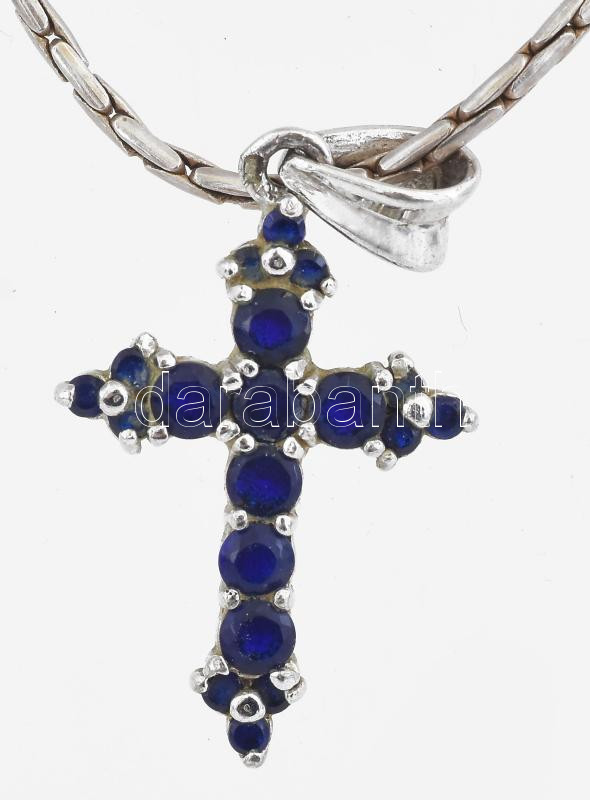 Beschreibung: Ezüst (Ag) boszton nyaklánc, kék kövekkel díszített kereszt medállal, jelzett, 7,6g