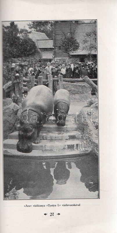 Budapest Székesfőváros Állat- és Növénykertjének rövid útmutatója. Budapest, 1927. Székesfővárosi Állat- és Növénykert (Székesfővárosi házinyomda). 64 p. + 1 térkép (színes, kihajtható). A rendkívül költséges intézménynek számító, állandóan forráshiánnyal küszködő, nevezetes kulturális és szórakoztató intézmény, park és sétahely, azaz az ország első állatkertje, a budapesti Állatkert 1866. évi nyitása után 40 évvel, 1907-ben csődbe ment, és bezárta kapuit. Jóllehet az ezredforduló éve jelentős bevételt hozott, az egzotikus állatok és növények beszerzése és gondozása folyamatosan meghaladta a park anyagi lehetőségeit. A csődbe jutott részvénytársaságot Budapest vásárolta meg. 1907-től több éven át tartó tervezés és építkezés kezdődött, zoológusok, botanikusok és építészek, belsőépítészek bevonásával teljesen átalakították az állatkert koncepcióját. A korábban is meglevő Kis- és Nagy-tó, Kis- és Nagy-szikla mellé ekkor épült meg az Állatkert több ikonikus épülete, szecessziós, népi szecessziós stílusban (Neuschloss Kornél, Róth Miksa, Kós Károly, Zrumeczky Dezső). Átalakították az állattartás koncepcióját is, sokkal tágasabb kifutókat építve az addig szűk helyen tartott állatállománynak, és számos új, egzotikus példányt is beszereztek. Szövegközti felvételekkel gazdagon illusztrált kiadványunk az 1912-ben újranyitott állatkert utáni másfél évtized eredményeit mutatja be. Az Állatkert rövid történetének összefoglalása után az Útmutató az egyes attrakciókat ismerteti, sétautakat ajánl. Az Útmutató korábbi kiadásaihoz képest a fényképanyag sokkal inkább az állatokra és a növényekre koncentrál - pózoló állatgondozók, látogatók kevésbé tűnnek fel a képeken. A kötet végi színes térkép pedig arról tanúskodik, hogy az újranyitás után a századfordulós mutatványos és más kiegészítő bevételi forrásokat a kertben magában alaposan korlátozták (a mutatványos bódék szigorúan az Állatkerten kívül kapott helyet), a cukorkaárusítóknak, a hűsítő árusoknak, a dohánytőzsdének is kevés hely jutott. Új attrakciónak számít azonban a Kis-sziklában kialakított moziterem, és az Állatkert növényvilága is markáns fejlesztéseken esett át. Számos oldalon hirdetések. Fűzve, színes, illusztrált, enyhén sérült kiadói borítóban.