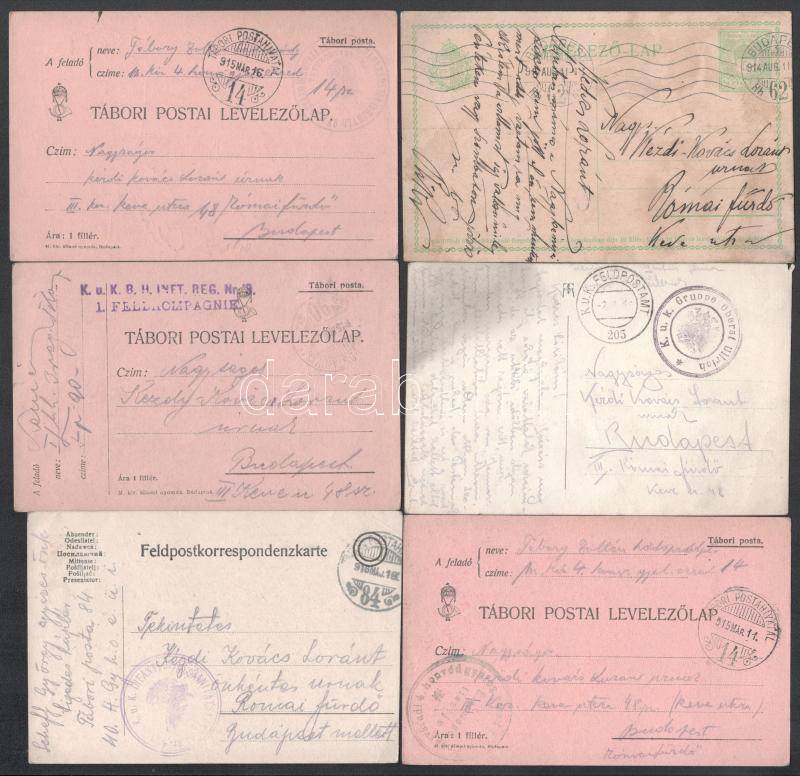 cca 1914-16 össz 10 db I. világháborús tábori posta Kézdi-Kovács Lóránthoz (1897-1916), Kézdi-Kovács László (1864-1942) festőművész, műkritikus fiához, közte egy rajzos valamint egy Sárdy Brutustól, későbbi festőművész, restaurátortól. Kézdi-Kovács Lóránt mindössze 19 évesen, 1916-ban az I. világháborúban esett el.