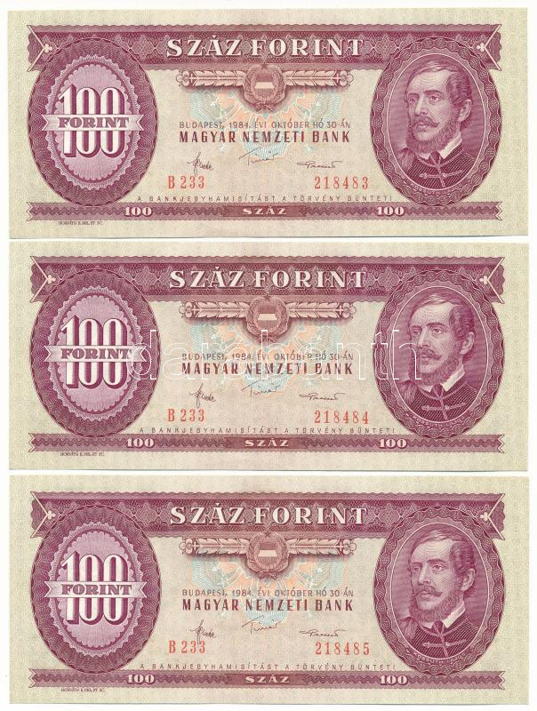1984. 100Ft (3x) sorszámkövetők "B 233 218483 - B 233 218485" T:AU