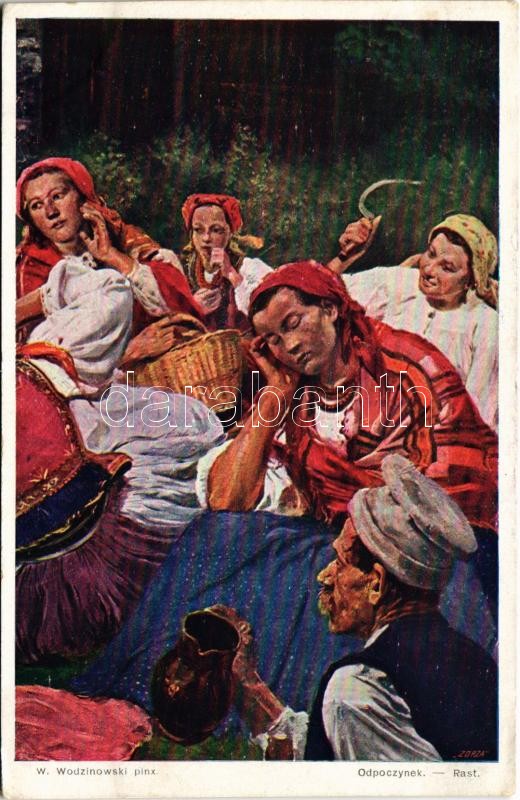 Beschreibung: Odpoczynek / Rast / Polish folklore art postcard s: W. Wodzinowski (vágott / cut)