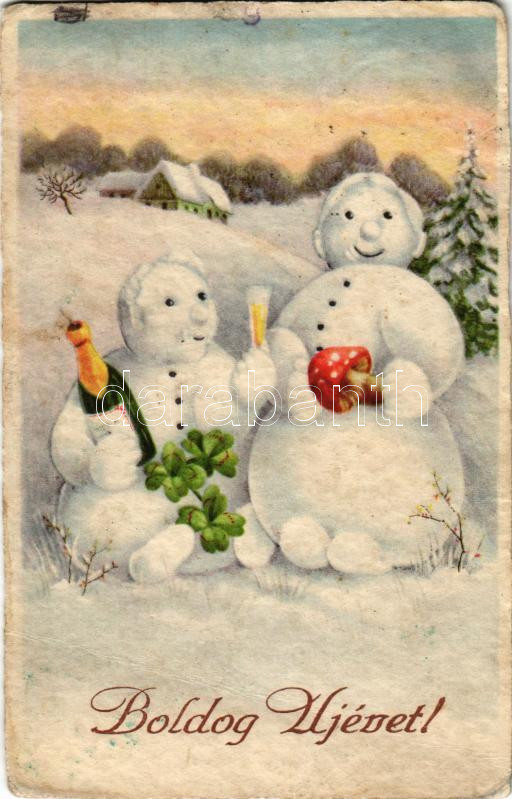 1938 Boldog újévet! Hóemberek / New Year greeting, snowman (Rb) https://www.darabanth.com/de/484-Fernauktion/484.0/Ansichtskarten/GruC39Fkarten-Feste~2000059/1938-Boldog-ujevet-Hoemberek-New-Year-greeting-snowman-Rb~II3296570