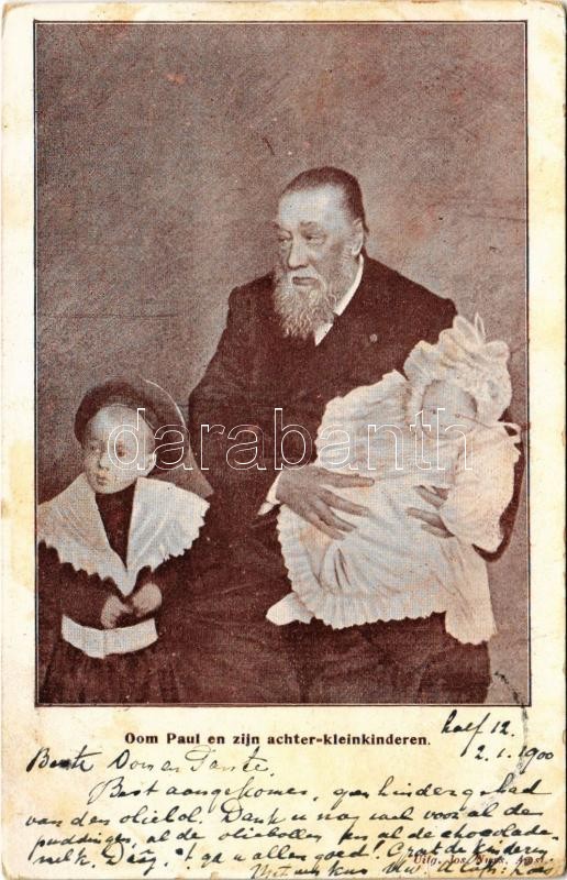 1900 Oom Paul en zijn achter-kleinkinderen / President Paul Krüger with his great-grandchildren (worn corners)
