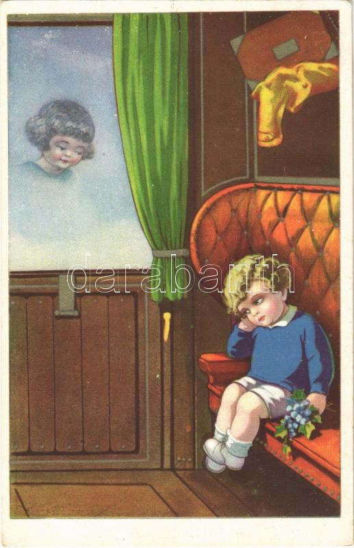 1934 Children art postcard, romantic couple, train. Degami 2210. s: Ca... https://www.darabanth.com/de/484-Fernauktion/484.0/Ansichtskarten/Kinder~2000026/1934-Children-art-postcard-romantic-couple-train-Degami-2210-s-Castelli~II2335691