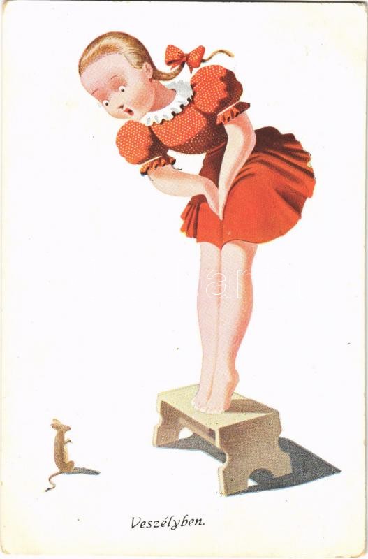 1937 Veszélyben / Children art postcard, girl with mouse (EK) https://www.darabanth.com/de/484-Fernauktion/484.0/Ansichtskarten/Kinder~2000026/1937-Veszelyben-Children-art-postcard-girl-with-mouse-EK~II2335672