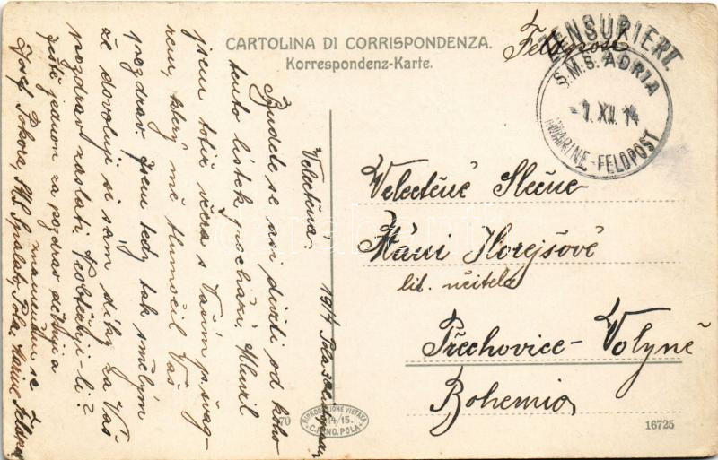 Beschreibung: 1914 Pola, Pula; Hotel Riviera, tram, park, amphitheatre + "ZENSURIERT S.M.S. ADRIA 1.XII.14 MARINE FELDPOST" (EK)