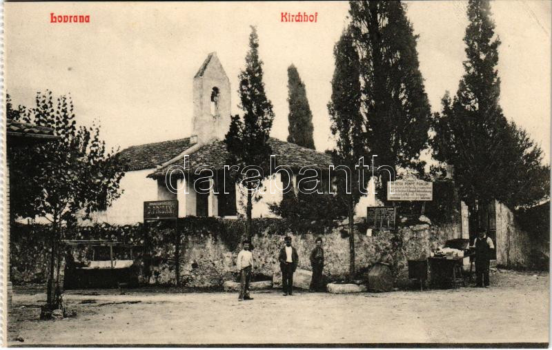 Lovran, Kirchhof / church, B. Prodan, funeral home of Castellich https://www.darabanth.com/de/484-Fernauktion/484.0/Ansichtskarten/Kroatien~2000009/Lovran-Kirchhof-church-B-Prodan-funeral-home-of-Castellich~II3306752