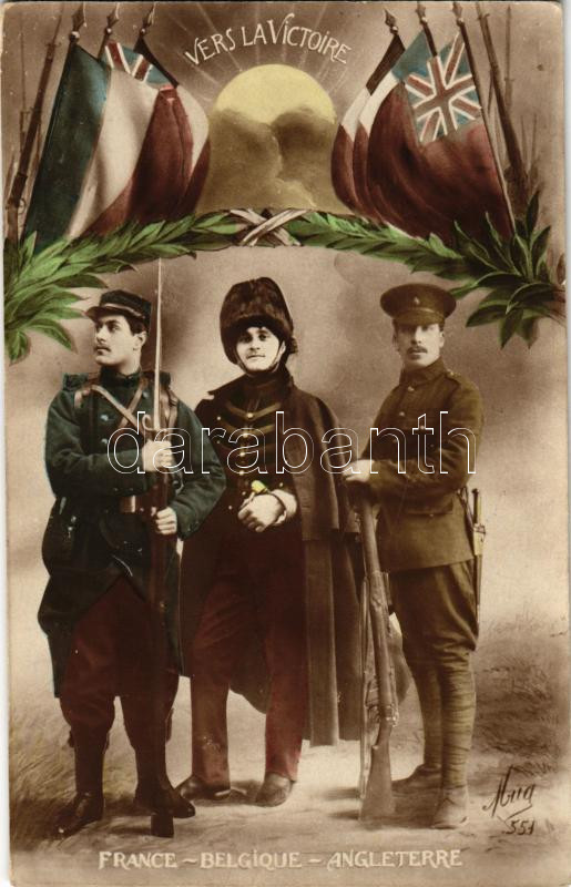 1915 Vers la Victoire. France - Belgique - Angleterre / WWI Triple Ent... https://www.darabanth.com/de/484-Fernauktion/484.0/Ansichtskarten/Militaria~2000035/1915-Vers-la-Victoire-France-Belgique-Angleterre-WWI-Triple-Entente-Powers-propaganda-with-Fr~II3278491
