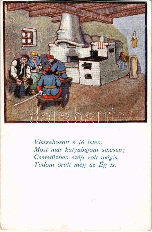 Beschreibung: Visszahozott a jó Isten, most már kutyabajom sincsen... Első világháborús magyar katonai lap / WWI K.u.k. Austro-Hungarian military art s: Cselényi (fl)