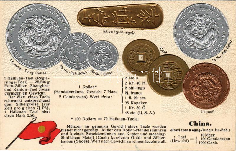 China - set of coins, currency exchange chart and flag. Emb. litho (ly... https://www.darabanth.com/de/484-Fernauktion/484.0/Ansichtskarten/Numismatik~2000043/China-set-of-coins-currency-exchange-chart-and-flag-Emb-litho-lyukak-pinholes~II3308081