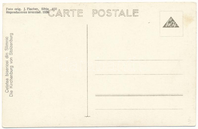 Szelindek, Stolzenburg, Slimnic; vártemplom. Foto orig. J. Fischer 858... https://www.darabanth.com/de/484-Fernauktion/484.0/Ansichtskarten/Siebenburgen~2000006/Szelindek-Stolzenburg-Slimnic-vartemplom-Foto-orig-J-Fischer-858-1936-Cetatea-bisericei-~II3254318