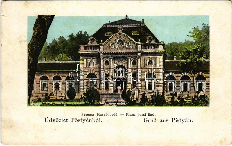 1908 Pöstyén, Pistyan, Piestany; Ferenc József fürdő. Gipsz H. kiadása... https://www.darabanth.com/de/484-Fernauktion/484.0/Ansichtskarten/Slowakei~2000007/1908-Postyen-Pistyan-Piestany-Ferenc-Jozsef-furdo-Gipsz-H-kiadasa-Franz-Josef-Bad-spa~II2792314