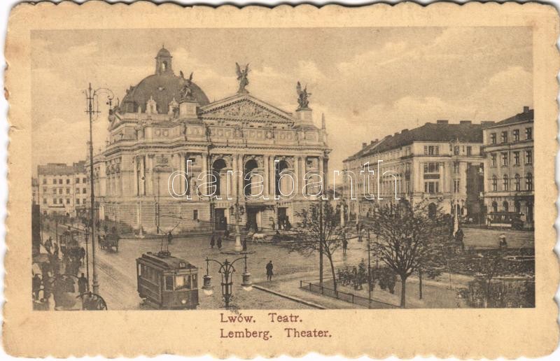Lviv, Lwów, Lemberg; Teatr / Theater / theatre, tram (EK) https://www.darabanth.com/de/484-Fernauktion/484.0/Ansichtskarten/Ukraine~2000119/Lviv-Lwow-Lemberg-Teatr-Theater-theatre-tram-EK~II2371634