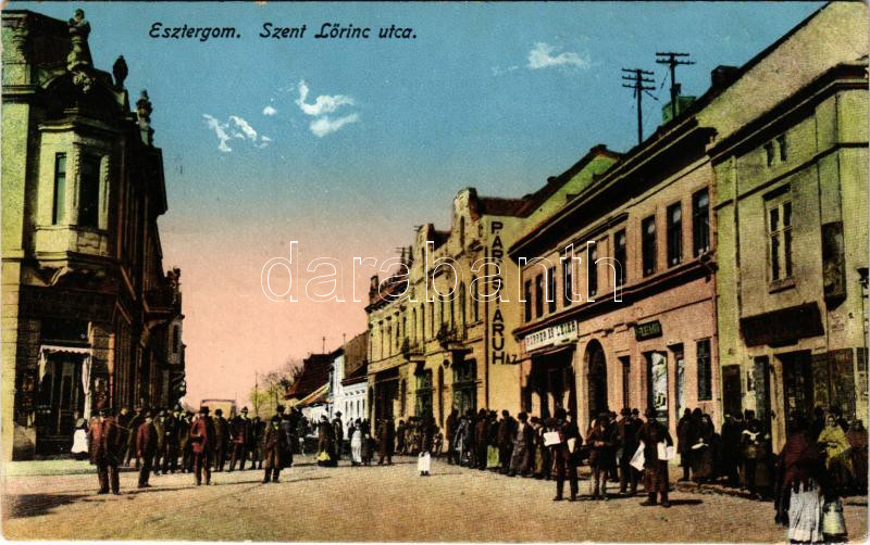 1915 Esztergom, Szent Lőrinc utca, Párisi áruház, Popper és Leier, Pol... https://www.darabanth.com/de/484-Fernauktion/484.0/Ansichtskarten/Ungarn~2000005/1915-Esztergom-Szent-Lorinc-utca-Parisi-aruhaz-Popper-es-Leier-Pollak-Lipot-es-Fia-uzle~II3256793