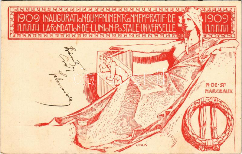 1909 Inauguration du Monument Commemoratif de la Fondation de l'Union Postale Universelle, Suisse / Inauguration of the Memorial of the Foundation of the Universal Postal Union in Switzerland, Bern coat of Arms, UPU monument, René de Saint-Marceaux + Ga. s: Linck