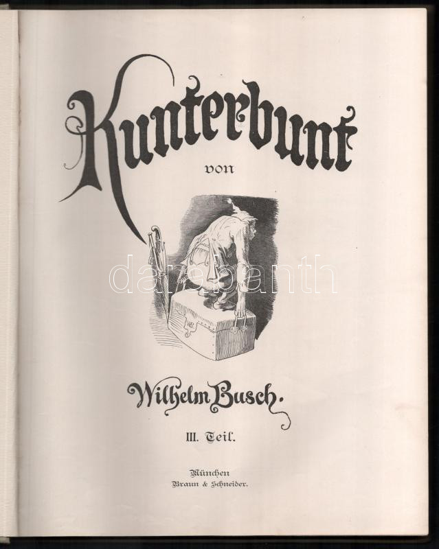 Busch, Wilhelm: Kunterbunt. III. Teil. München, é.n. (cca 1910), Braun... https://www.darabanth.com/de/484-Fernauktion/484.0/Bucher/Bucher-Andere-Sprachen~1000031/Busch-Wilhelm-Kunterbunt-III-Teil-Munchen-en-cca-1910-Braun-amp-Schneider-Fekete-feh~II3291734