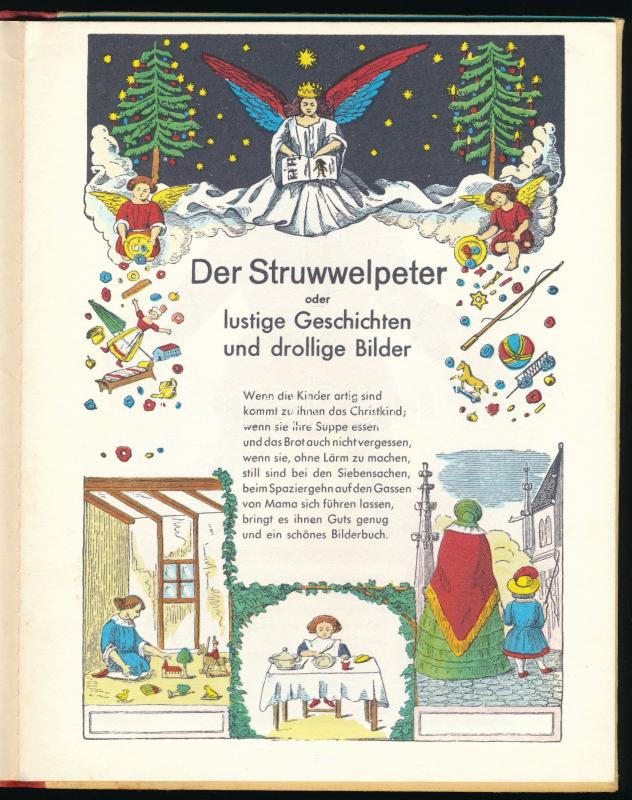 Hoffmann, Heinrich: Der Struwwelpeter oder lustige Geschichten und drollige Bilder für Kinder von 3 bis 6 Jahren. H.n., é.n., k.n. Reprint kiadás. Színes illusztrációkkal. Német nyelven. Kiadói félvászon-kötés, minimálisan foltos.