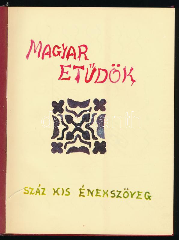 Weöres Sándor: Magyar etűdök. Száz kis énekszöveg. Bp., 1985, Táltos. Weöres Sándor kéziratos verseskönyvének hasonmás kiadása. Számozott, 4921. számú példány. Kiadói kartonált papírkötés.