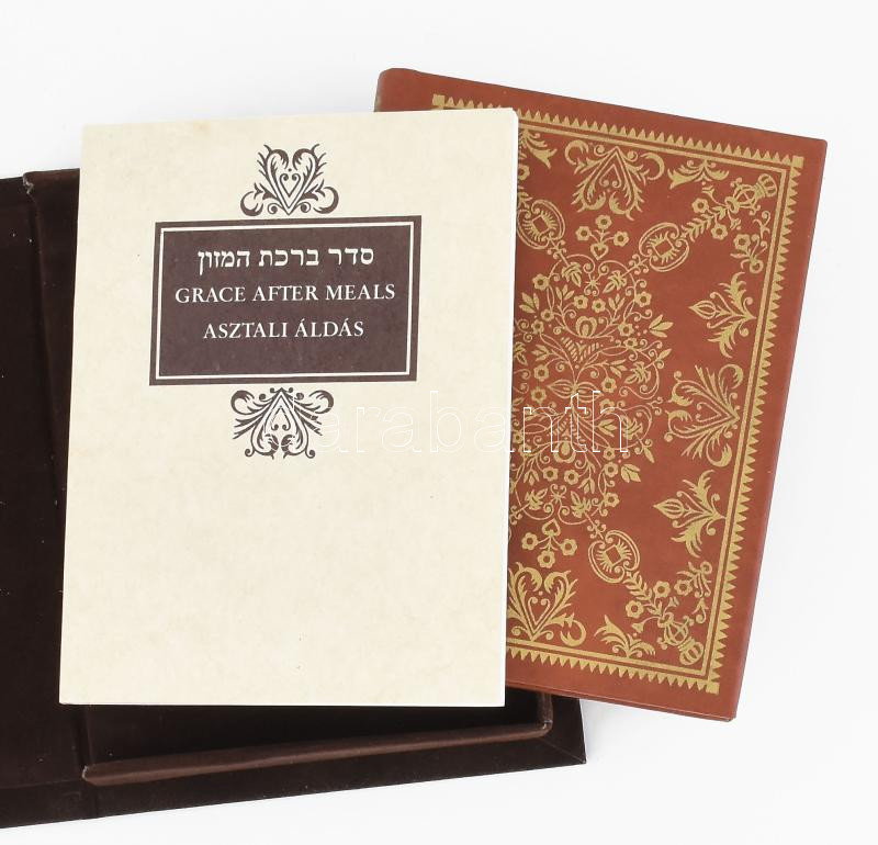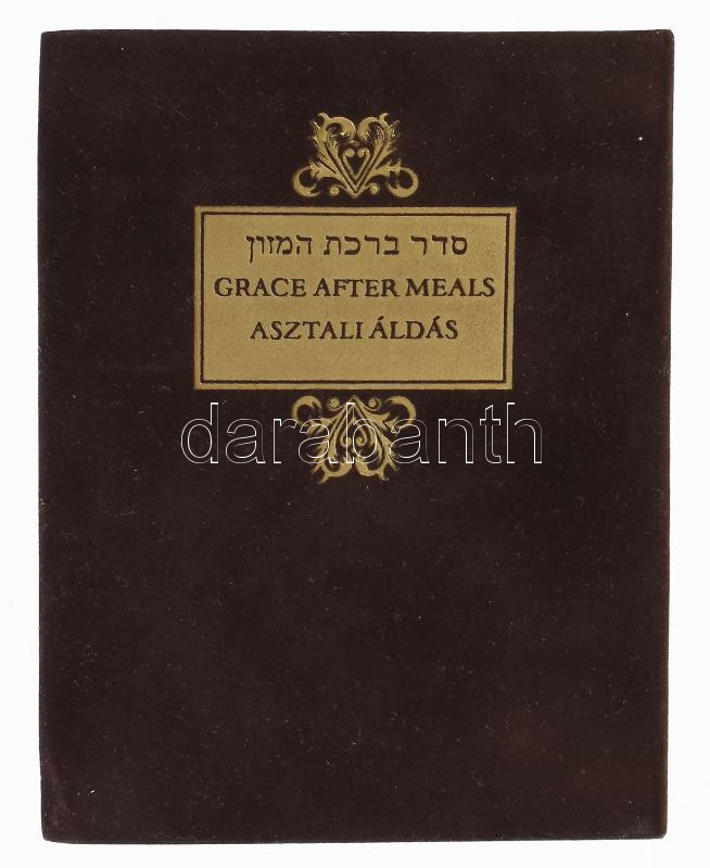Seder Birkat Ha-Mazon. Grace after meals. Asztali áldás. Iris Fishof tanulmányával. Bp., 1991, Helikon,(Békéscsaba,Kner-ny.) Magyar és angol nyelvű kísérőfüzettel. Fakszimile kiadás. Kiadói aranyozott egészműbőr-kötés és kiadói papírkötés, kiadói aranyozott bársony-tokban.